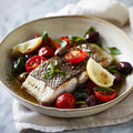 Roasted Sea Bass Fillet with Mediterranean garnish